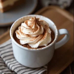 Instead of the traditional cold layers, though, you get it as a warm, soft cake. It’s like a cozy hug in a mug.